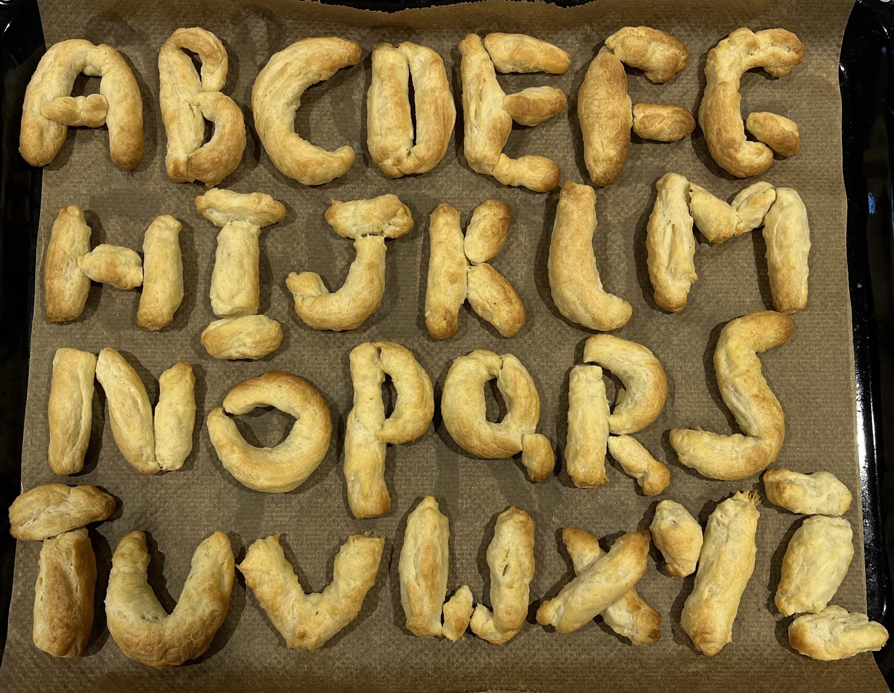A font inspired by the bakers process:‘Bakers Dozen’ explores the question; “what makes a space, a space?” and more importantly, “What makes a bakery, a bakery?”. The baked goods you find inside, are what solidify the space. Inspired by South-Londons’ ‘Toad Bakery’, I wanted my typeface to highlight the importance of what happens behind the scenes in bakeries. Watching and learning from the processes that can be seen at Toad, I took inspiration and followed similar processes to create my letters. Working with pastry, I individually shaped and baked each letter, just as a baker would shape each of their pastries.