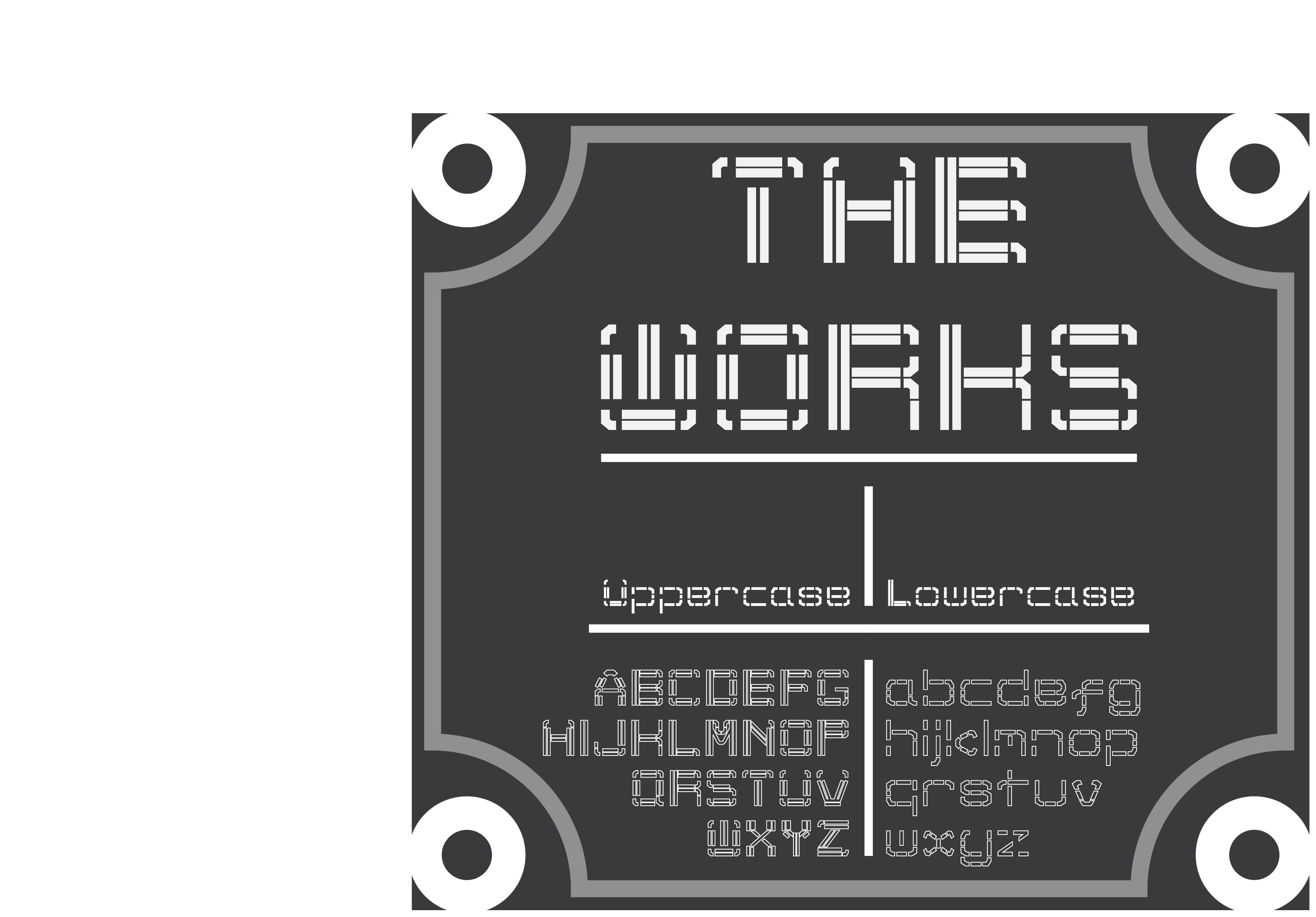 "The Works" is a typeface engineered to embody the ornate and industrial heritage of Peckham Rye Station and its architectural transformation. To capture this, I first looked into the construction of the building, drawing from the renaissance revival-style, taking inspiration from the forms of the walls, the metal engraved railings on the traditional station staircase, and the symmetry of the structure's design.